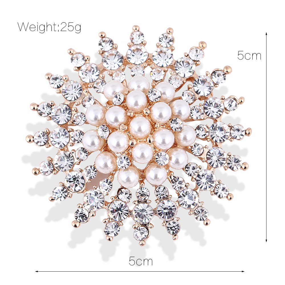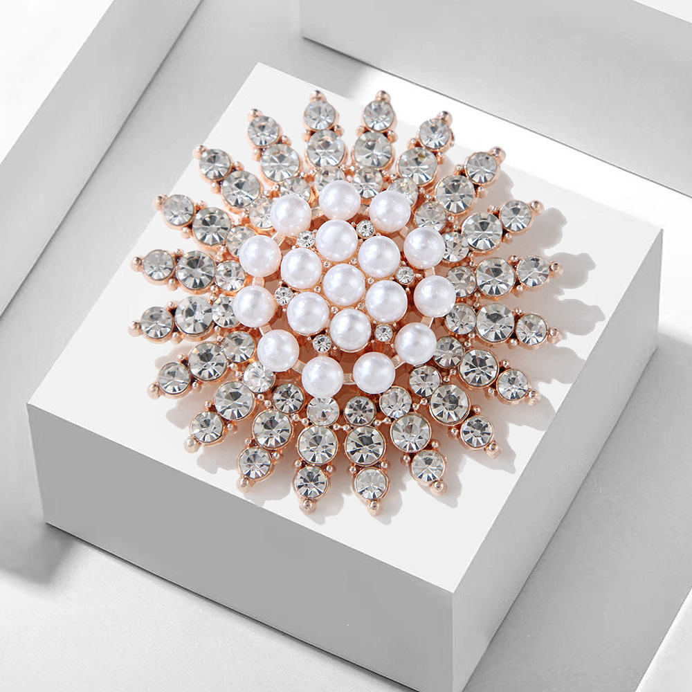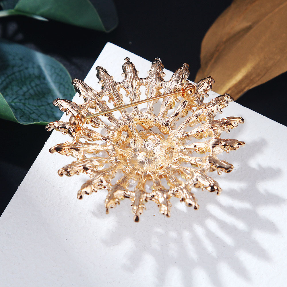 雪の結晶を思わせる放射状のデザインが美しいコサージュです。