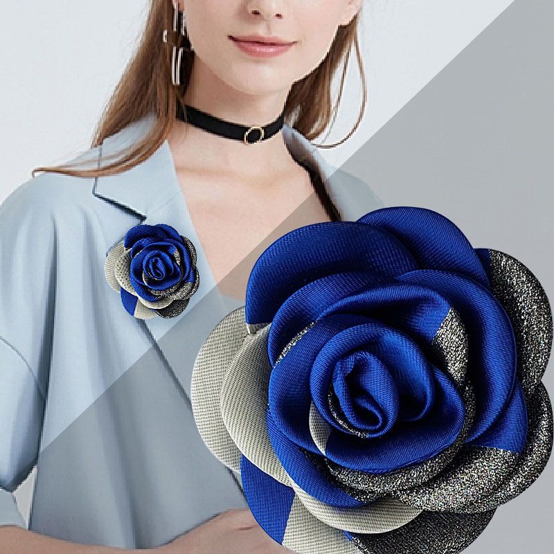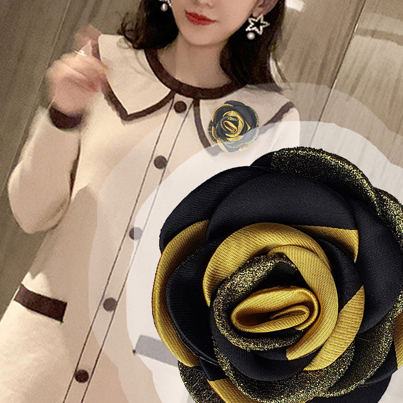 立体的な薔薇のモチーフが美しい布花のコサージュです。 入園式などのフォーマルシーンに最適な上品なデザインで、胸元を華やかに演出します。 光沢のある生地と金糸をあしらった花びらが重なり合い、高級感のある仕上がりになっています。 裏面には安全ピンが付いているので、ジャケットやスーツに簡単に取り付けられます。 大切な日の装いを格上げする、存在感のあるアクセサリーです。