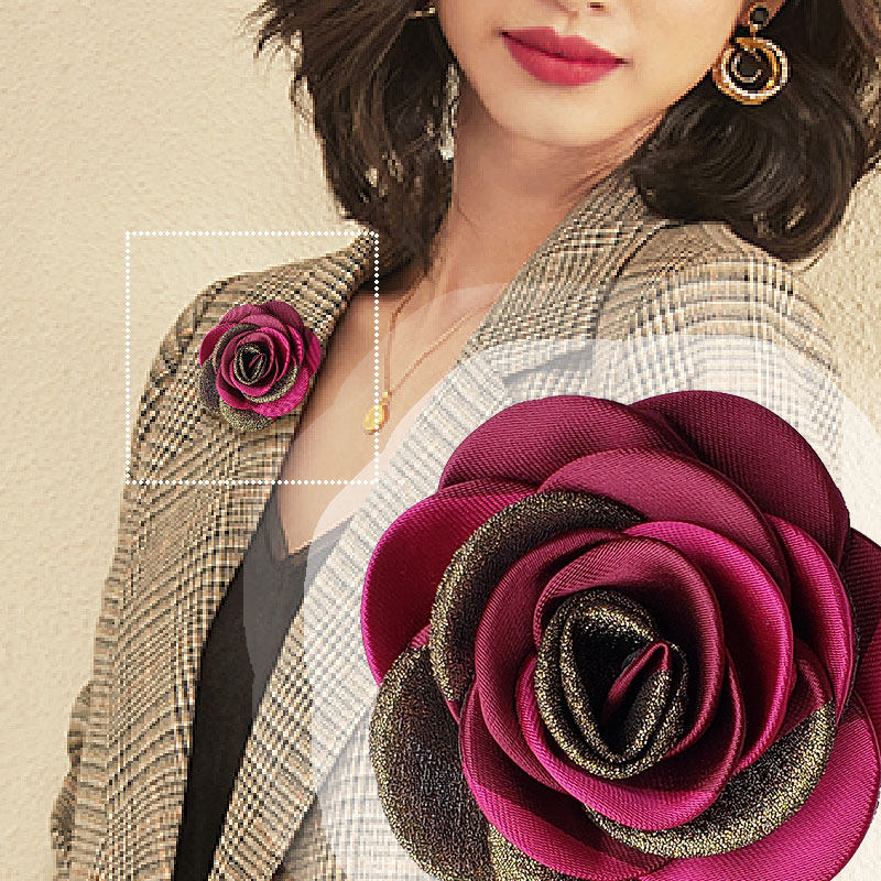 光沢のある生地と金糸をあしらった花びらが重なり合い、高級感のある仕上がりになっています。