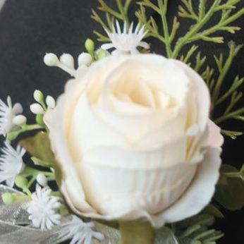 優美な薔薇を中心に小花とグリーンを組み合わせた上品なコサージュです。
