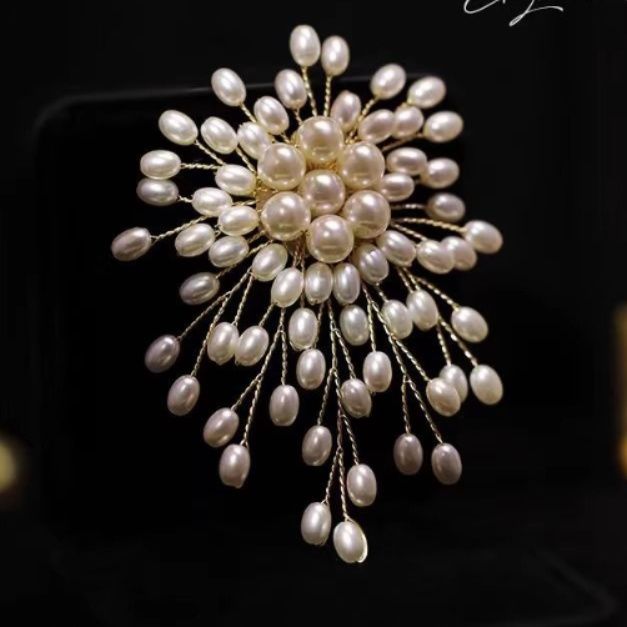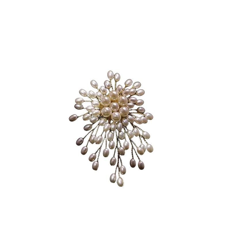中心から放射状に広がるパールが花火のように華やかなコサージュです。